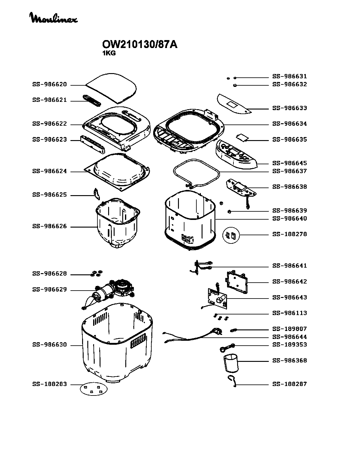 Запчасти для хлебопечки Moulinex OW210130/87A