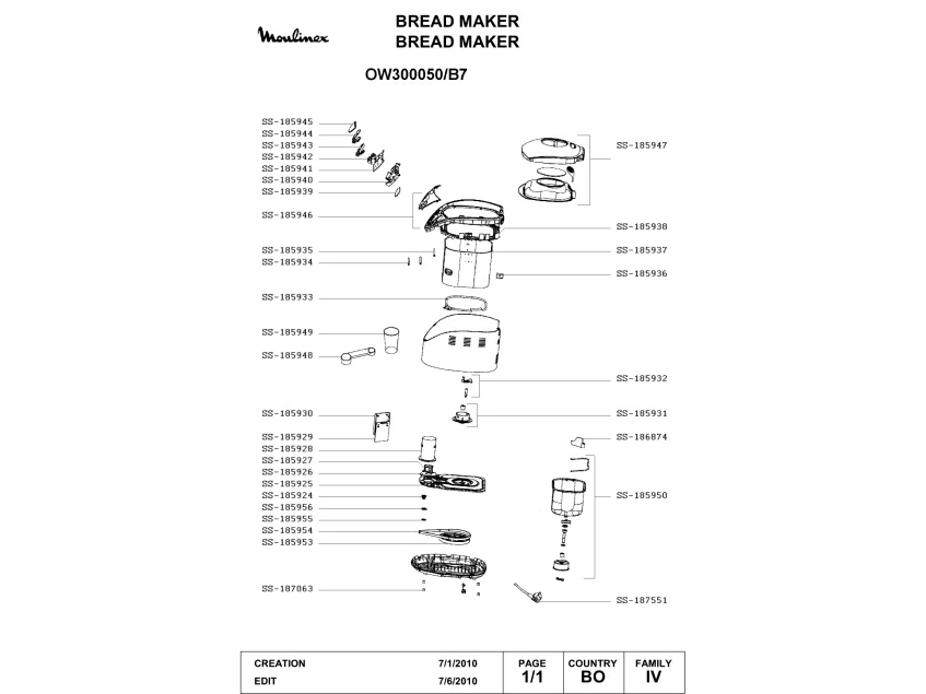 Запчасти для хлебопечки Moulinex OW300050/B7 (OW300050-B7-1)