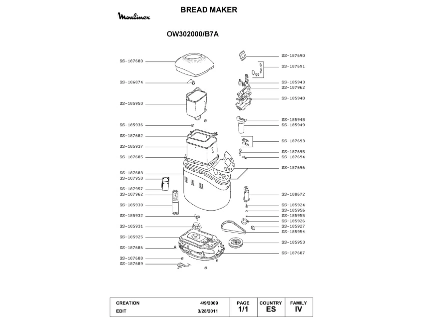 Запчасти для хлебопечки Moulinex OW302000/B7A (OW302000-B7A-1)