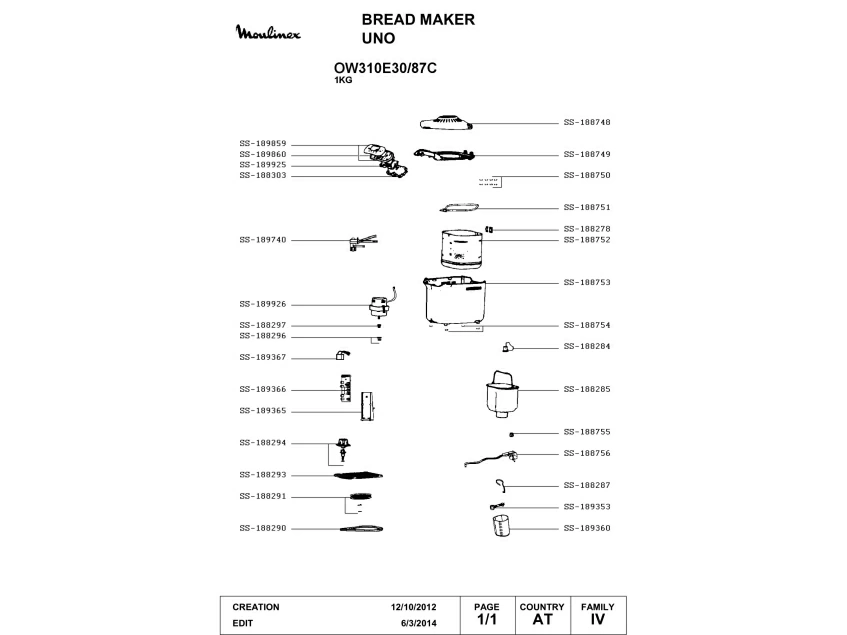 Запчасти для хлебопечки Moulinex OW310E30/87C (OW310E30-87C-1)
