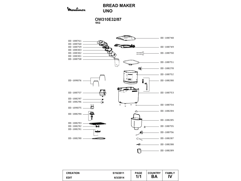 Запчасти для хлебопечки Moulinex OW310E32/87 (OW310E32-87-1)