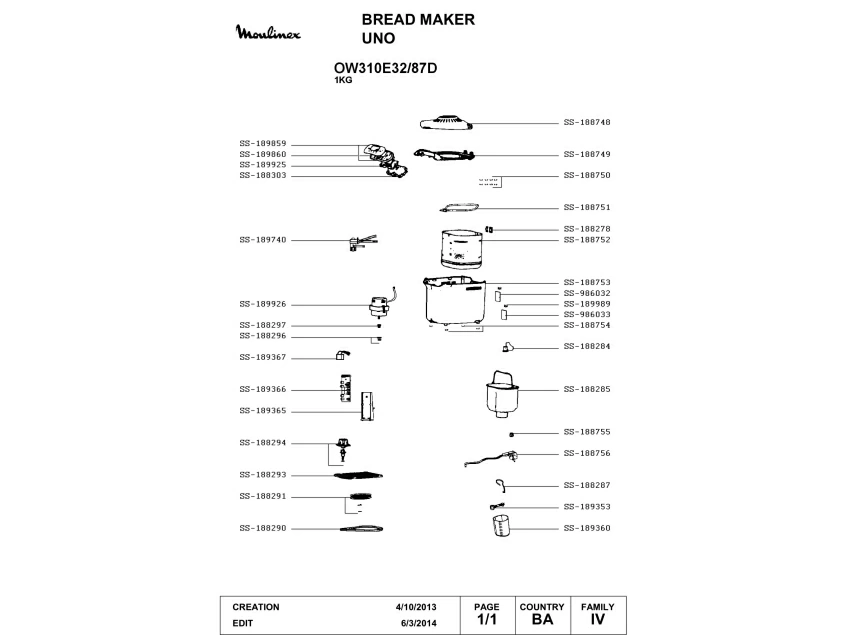 Запчасти для хлебопечки Moulinex OW310E32/87D (OW310E32-87D-1)