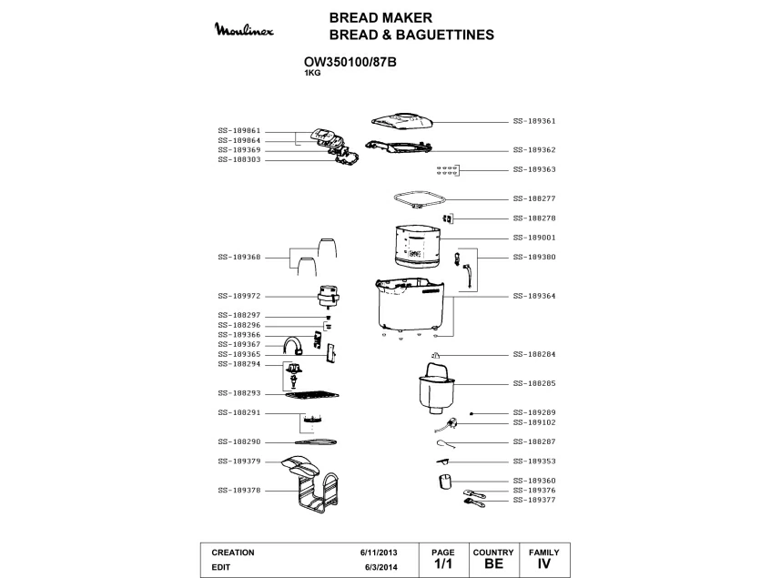 Запчасти для хлебопечки Moulinex OW350100/87B (OW350100-87B-1)