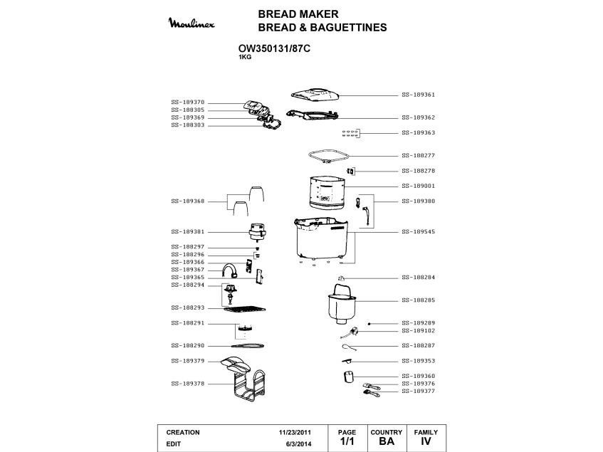Запчасти для хлебопечки Moulinex OW350131/87C (OW350100-87C-1)