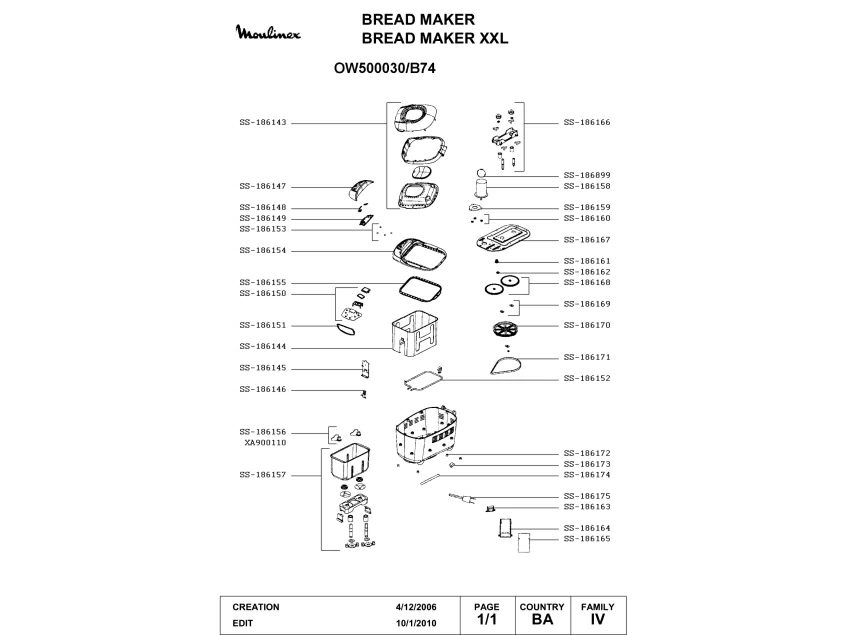 Запчасти для хлебопечки Moulinex OW500030/B74 (OW500030-B74-1)