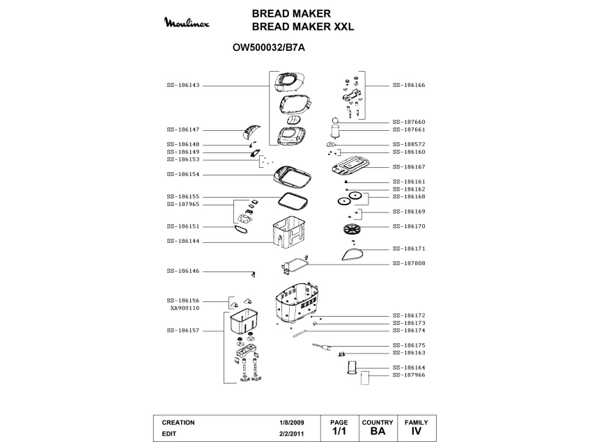 Запчасти для хлебопечки Moulinex OW500032/B7A (OW500032-B7A-1)