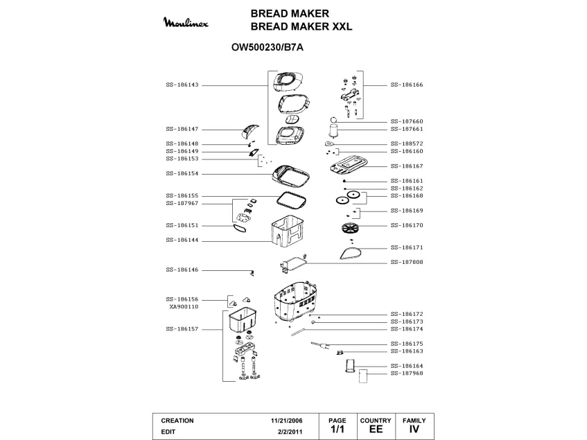 Запчасти для хлебопечки Moulinex OW500230/B7A (OW500230-B7A-1)