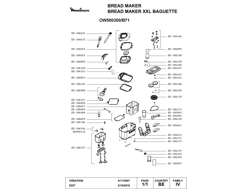 Запчасти для хлебопечки Moulinex OW500300/B71 (OW500300-B71-1)