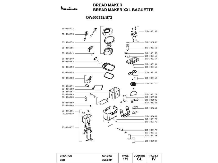 Запчасти для хлебопечки Moulinex OW500332/B72 (OW500332-B72-1)
