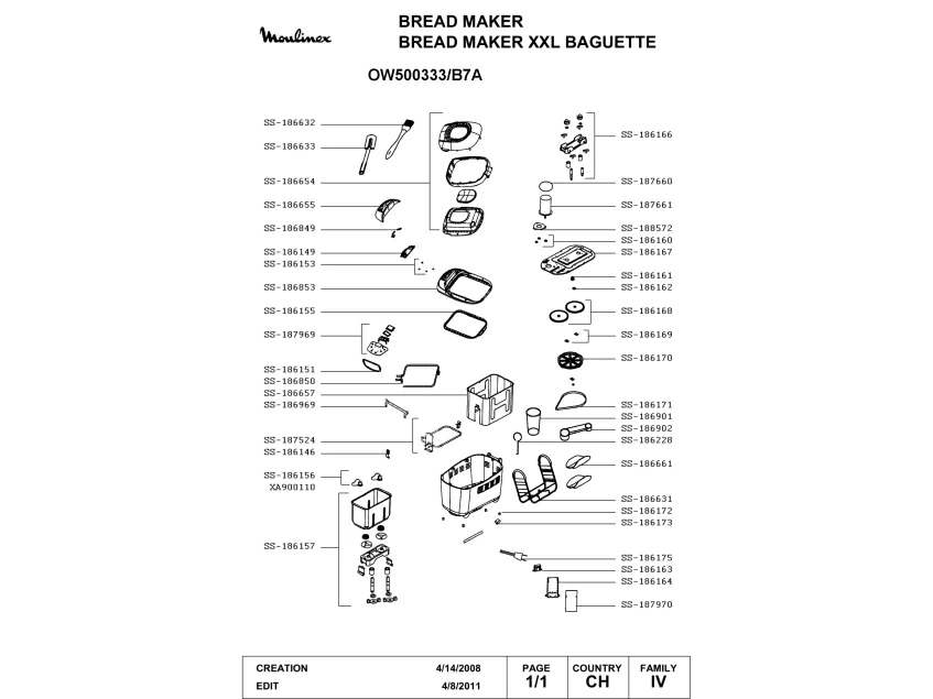 Запчасти для хлебопечки Moulinex OW500333/B7A (OW500333-B7A-1)