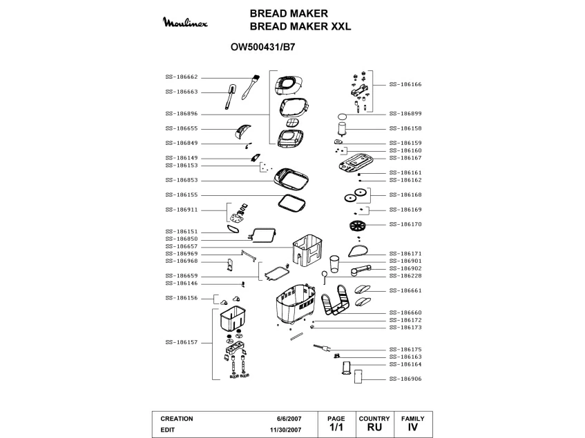 Запчасти для хлебопечки Moulinex OW500431/B7 (OW500431-B7-1)