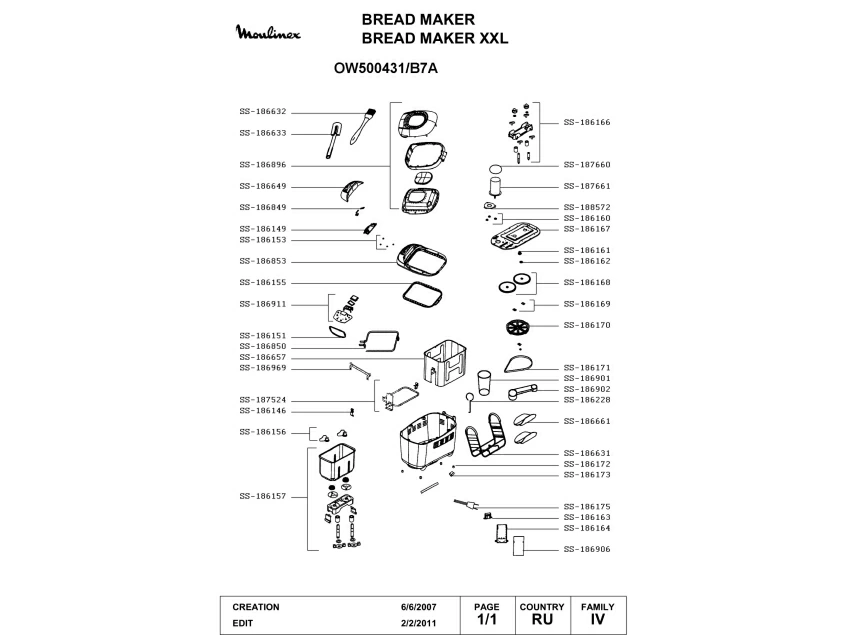 Запчасти для хлебопечки Moulinex OW500431/B7 (OW500431-B7A-1)