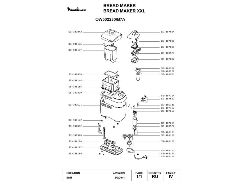 Запчасти для хлебопечки Moulinex OW502230/B7A (OW502230-B7A-1)