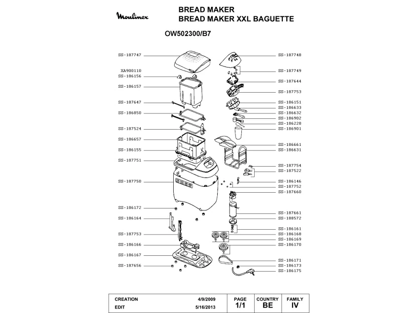 Запчасти для хлебопечки Moulinex OW502300/B7 (OW502300-B7-1)
