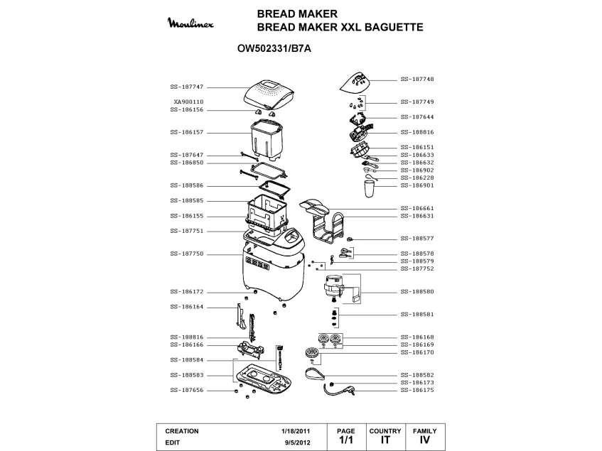 Запчасти для хлебопечки Moulinex OW502331/B7A (OW502331-B7A-1)