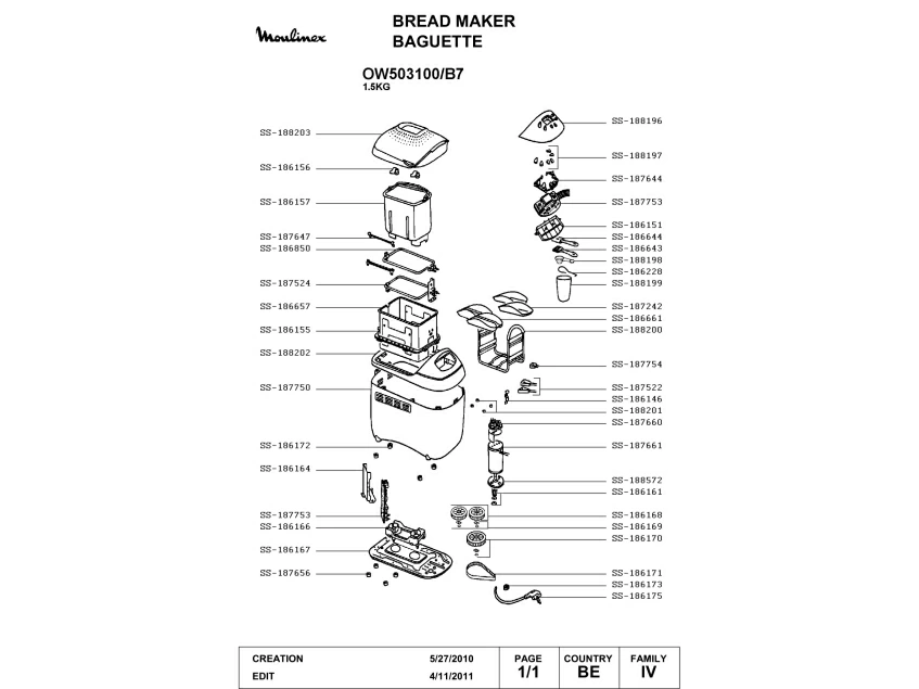 Запчасти для хлебопечки Moulinex OW503100/B7 (OW503100-B7-1)