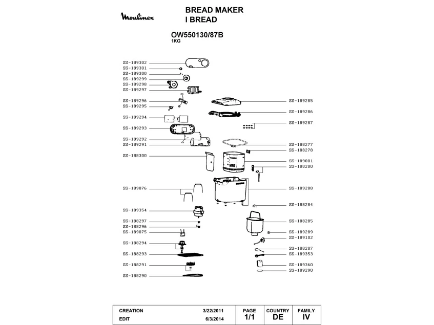 Запчасти для хлебопечки Moulinex OW550130/87B (OW550130-87B-1)