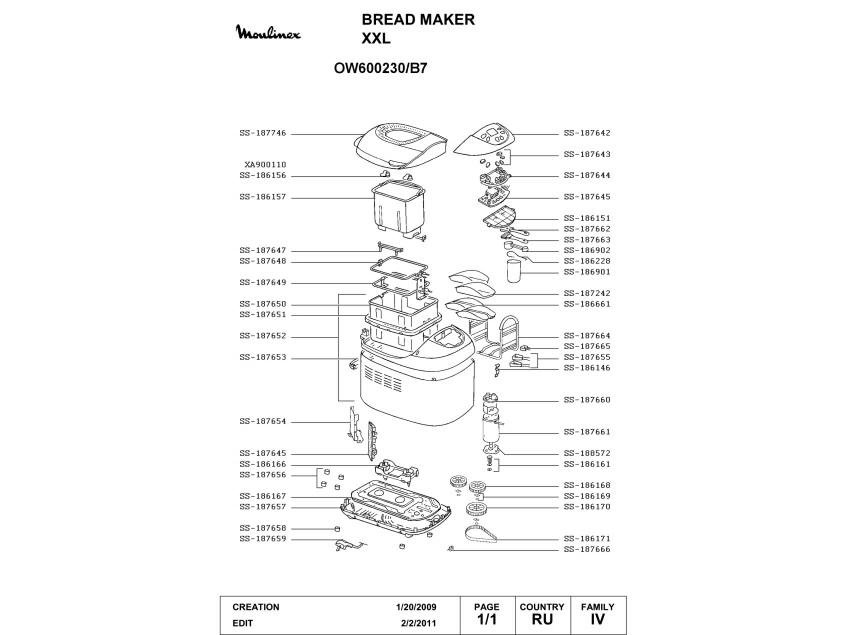 Запчасти для хлебопечки Moulinex OW600230/B7 (OW600230-B7-1)