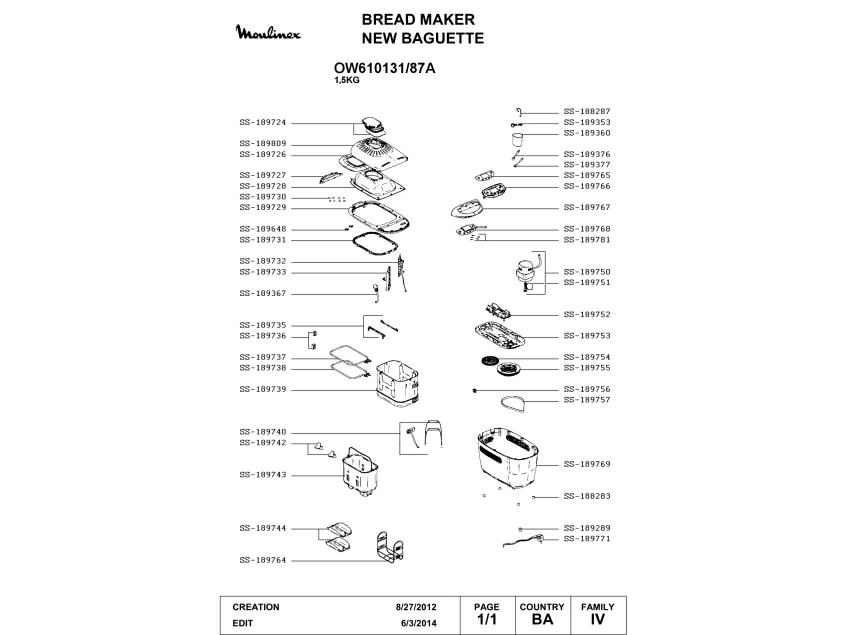 Запчасти для хлебопечки Moulinex OW610131/87A (OW610131-87A-1)