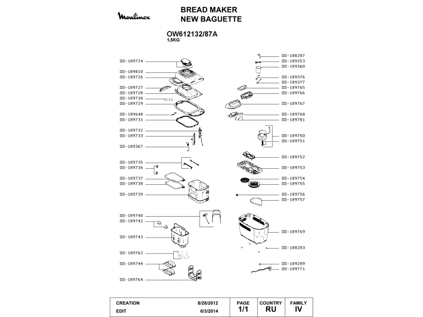 Запчасти для хлебопечки Moulinex OW612132/87A (OW612132-87A-1)