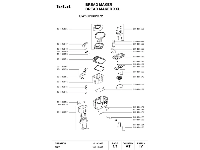 Запчасти для хлебопечки Tefal OW500130/B72 (OW500130-B72)
