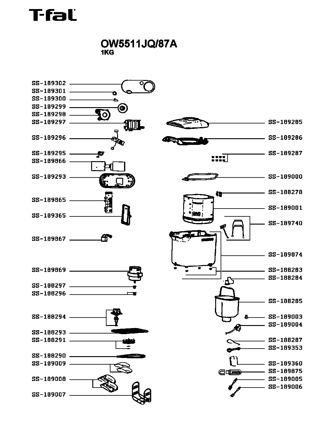 Запчасти для хлебопечки Tefal OW5511JQ/87A
