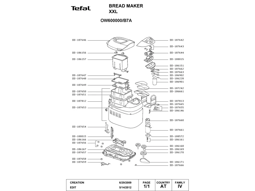 Запчасти для хлебопечки Tefal OW600000/B7A (OW600000-B7A)