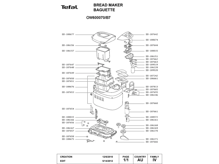Запчасти для хлебопечки Tefal OW600070/B7 (OW600070-B7)