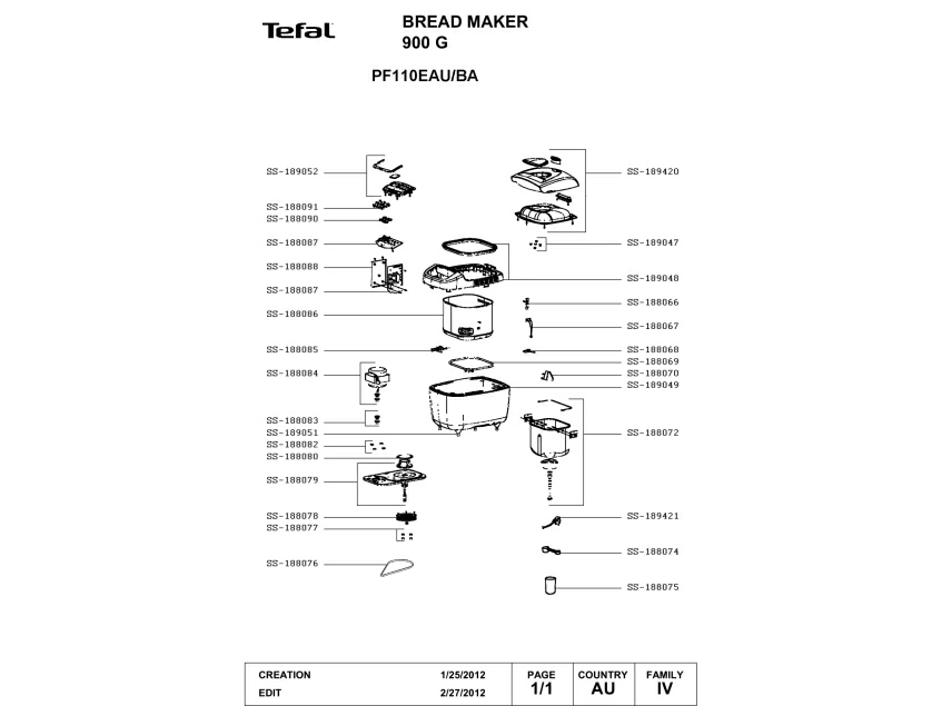 Запчасти для хлебопечки Tefal PF110EAU/BA (PF110EAU-BA)