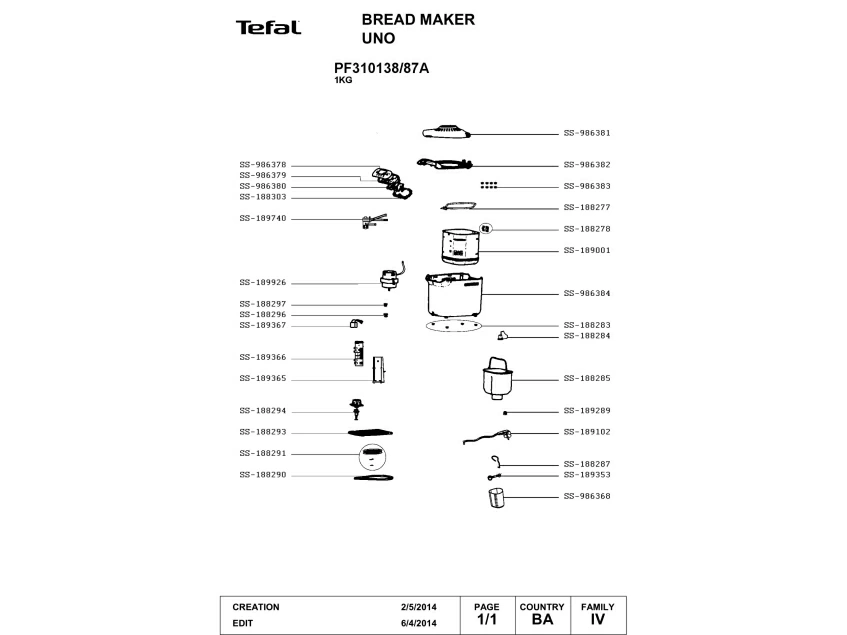 Запчасти для хлебопечки Tefal PF310138/87A (PF310138-87A)