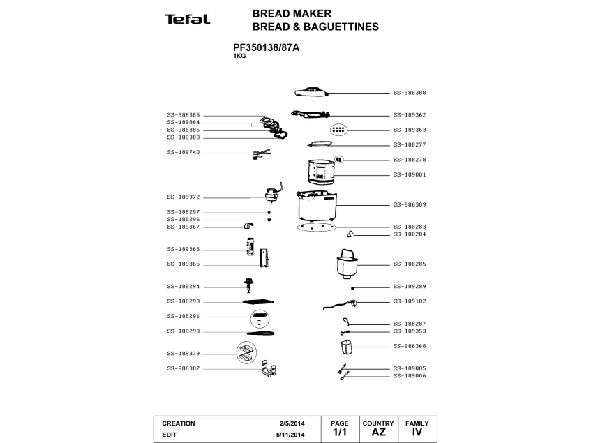 Запчасти для хлебопечки Tefal PF350138/87A (PF350138-87A)