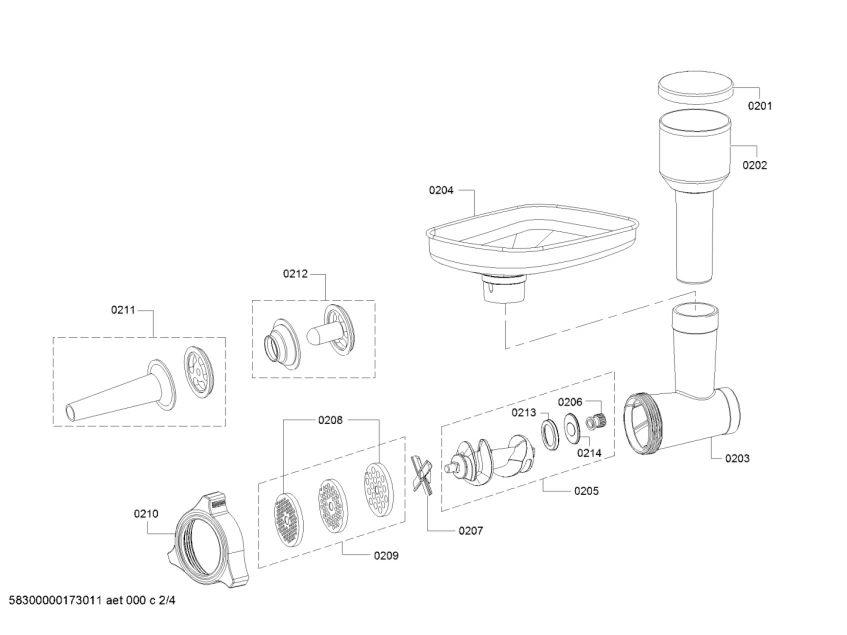 Запчасти для мясорубки Bosch MFW45020/01 (58300000173011_aet_000_c_02)