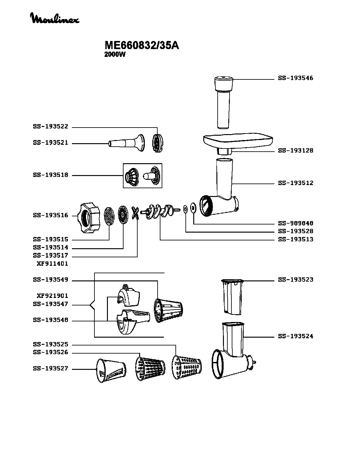 Запчасти для мясорубки Moulinex ME660832/35A