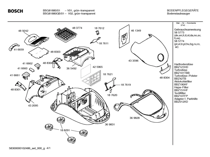 Запчасти для Bosch BSG81880GB/01 (58300000102486_aet_000_h_01)