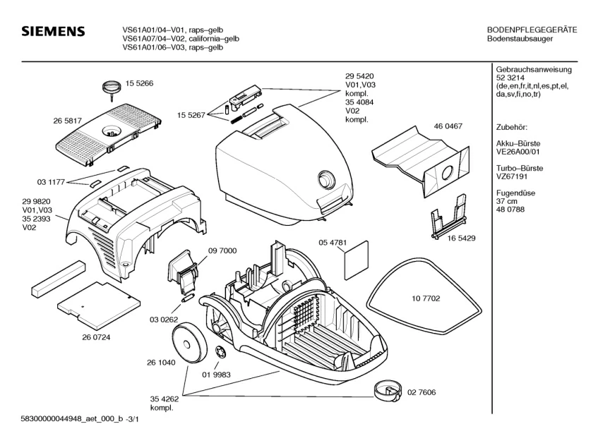 Запчасти для Siemens VS61A01/04 (58300000044948_aet_000_b_01)