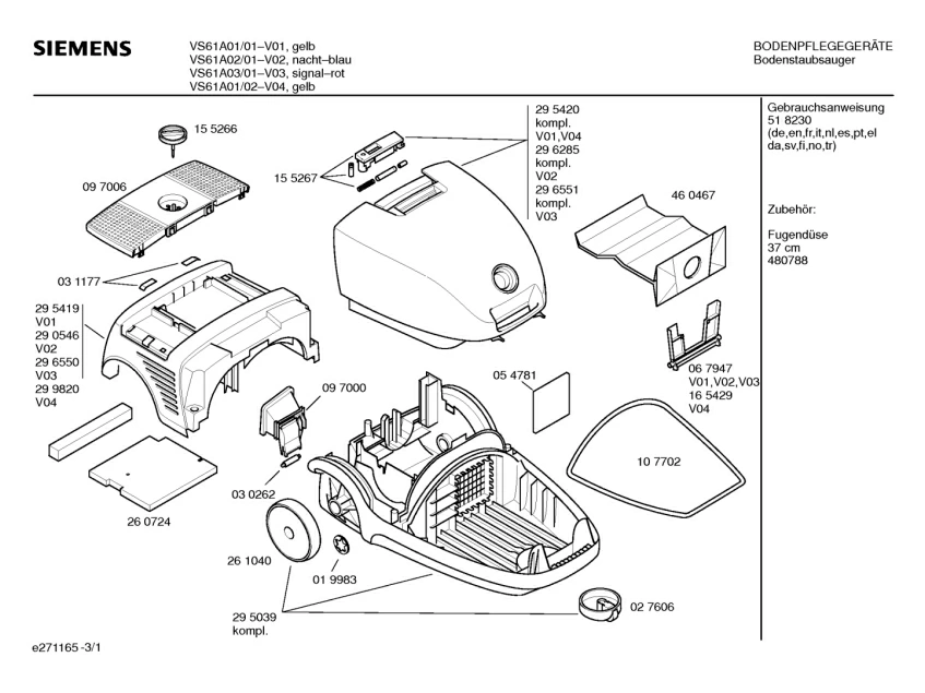 Запчасти для пылесоса Siemens VS61A03 (58300000045078_aet_000_a_01)